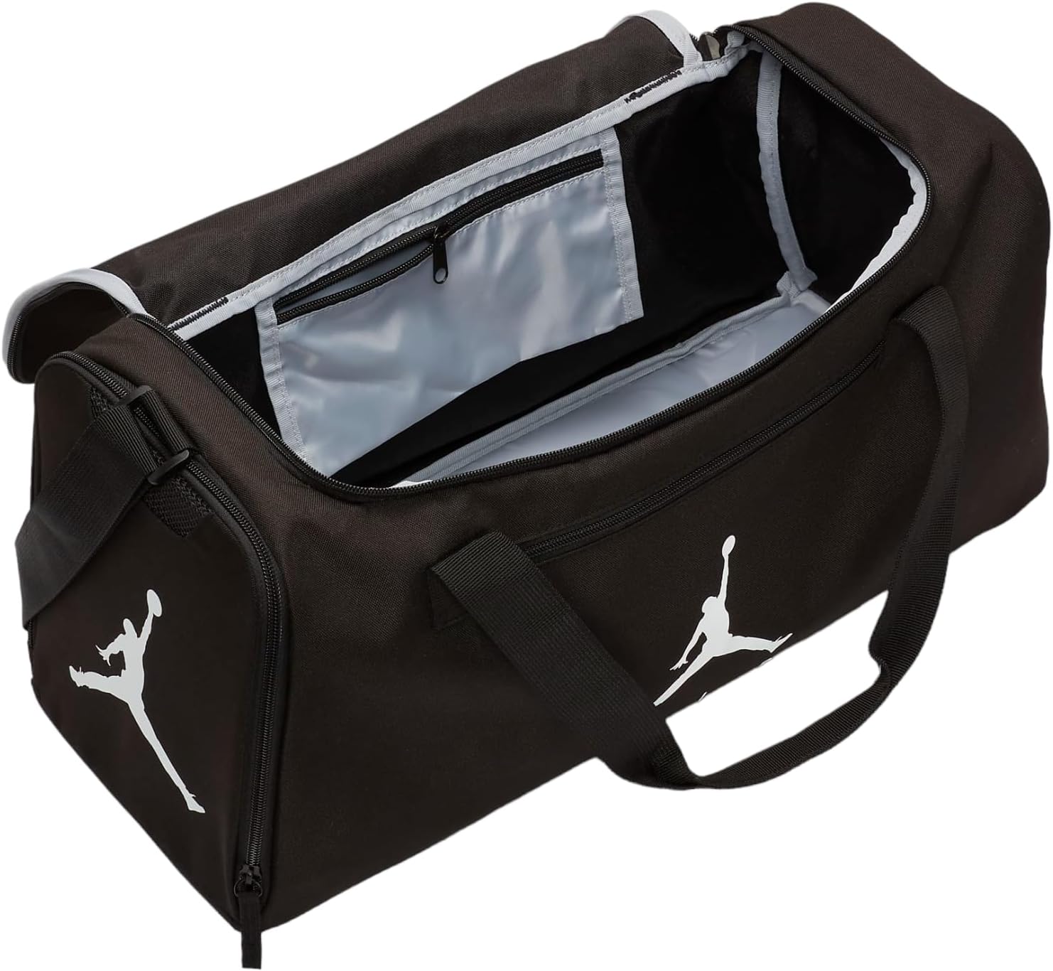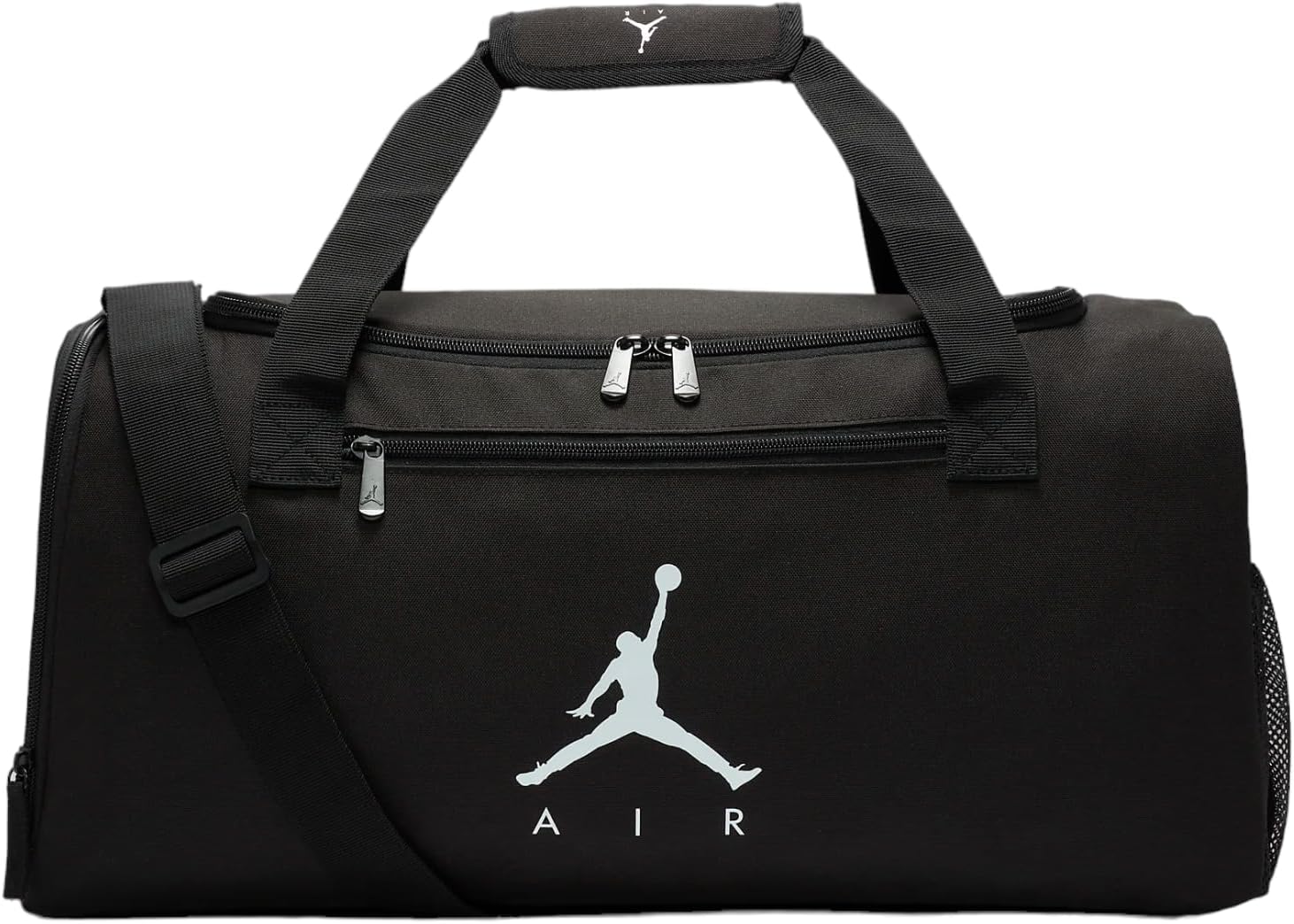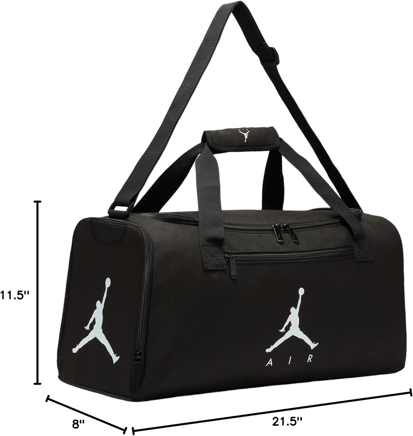 The adjustable shoulder strap and padded handles ensure comfortable carrying, while the multiple pockets provide convenient organization for your belongings. The iconic Air Jordan logo adds a touch of sporty flair to this versatile duffel bag.